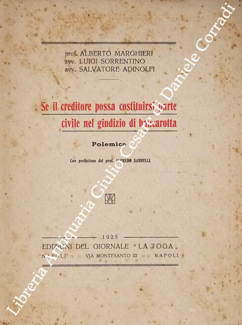 Se il creditore possa costituirsi parte civile nel giudizio di bancarotta. Polemica. Con prefazione del prof. Alfredo Sandulli | Libri antichi e moderni | Adinolfi Salvatore - Marghieri Alberto - Sorrentino Luigi