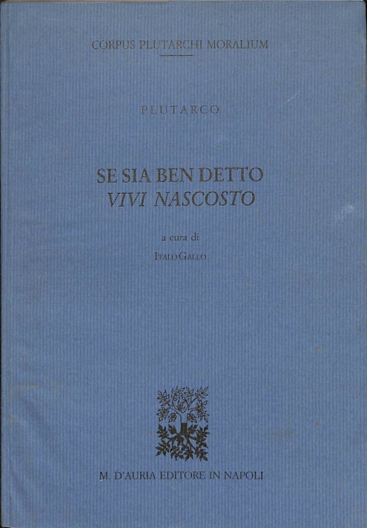 Se sia ben detto vivi nascosto | Libri antichi e moderni | Plutarco