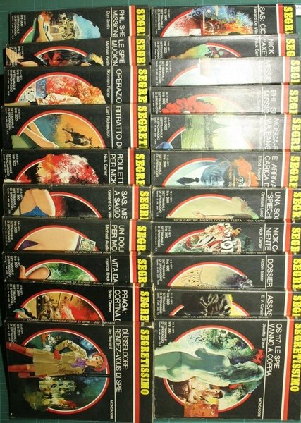 Settimanale di spionaggio - Nn. 371/386-391/395 - in 16° - pp.Circa 140 pagine a volume - Brossura editoriale illustrata - Ventuno volumi - Scompleto - Titoli contenuti: SAS: ciclone all'ONU; Nick Carter: AXE nella manica; Missione 117 per OS 117; Phil Sherman: missione 4; Mosca-Parigi via Bangkok; E' arrivata una nave carica di… spie; Una sostanza spiechedelica; Nick Carter, niente colpi di testa!; Dossier Suez; Assassini si muore; OS 117: le spie vanno a coppia; Phil Sherman: missione 5; Le spie muoiono in piedi; Operazione Lesnic 5; Ritratto di spia; Roulette russa per Nick Carter; SAS: missione a Saigon; Un dollaro per morire; Vita da spia; Praga: cortina di fuoco; Dusseldorf: rendez-vous di spie