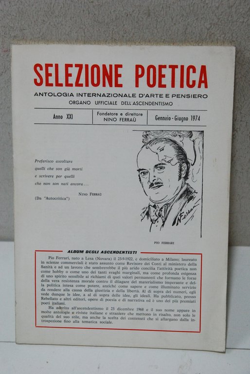 aavv selezione poetica antologia internazionale d'arte e pensiero organo ufficiale ascendentismo nino ferraù. 1974 .