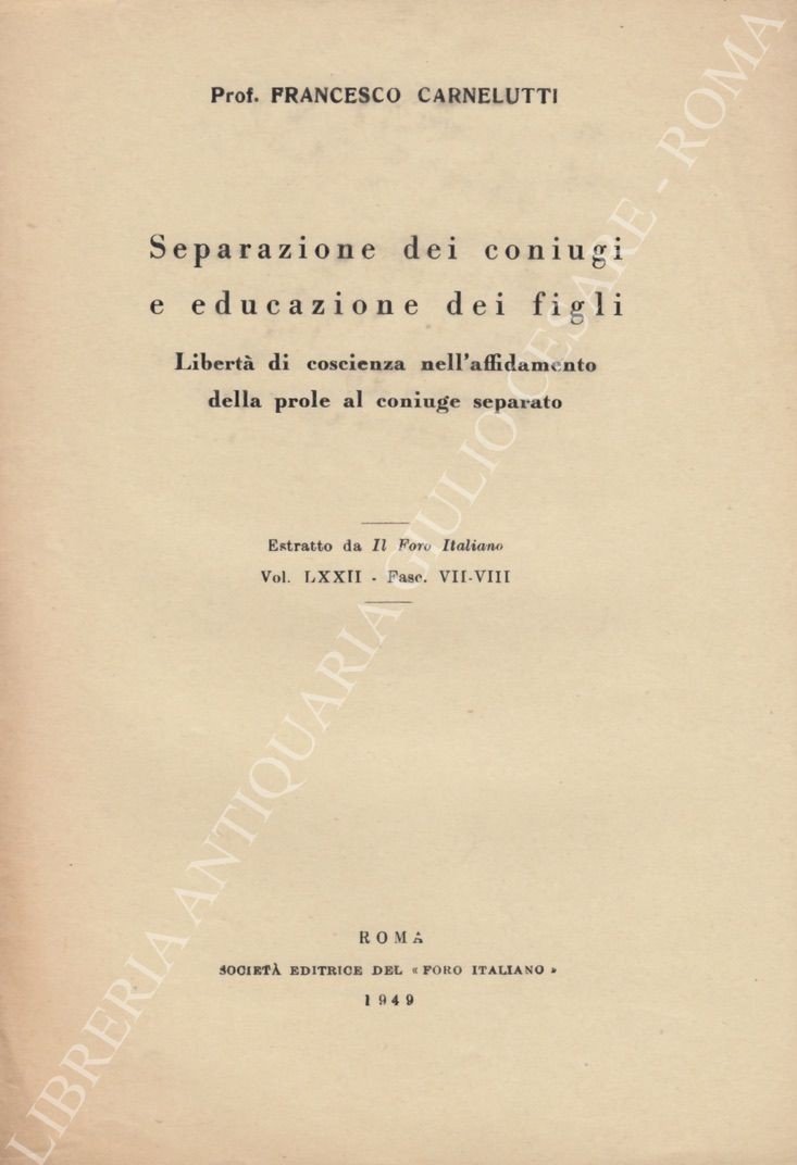 Separazione dei coniugi e educazione dei figli. Libertà di coscienza nell'affidamento della prole al coniuge separato | Libri antichi e moderni | Carnelutti Francesco (1879-1965)