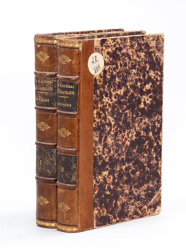 Traduits par M. l'Abbé Lapotre, 2 vol. in-12 reliure demi-basane marron, dos à 4 nerfs orné, Henri Aniéré, Paris, 1866, 467 ; 463 pp. Rare exemplaire de la traduction française des Sermons du cardinal Wiseman. Etat très satisfaisant