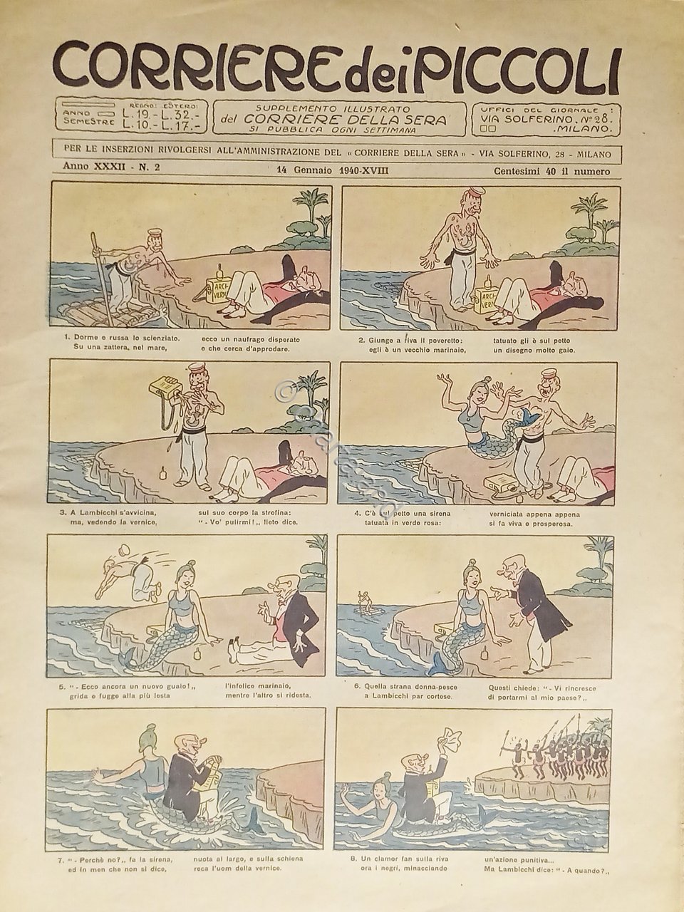 Settimanale a Fumetti per i Ragazzi - Corriere dei Piccoli N. 2 - 1940