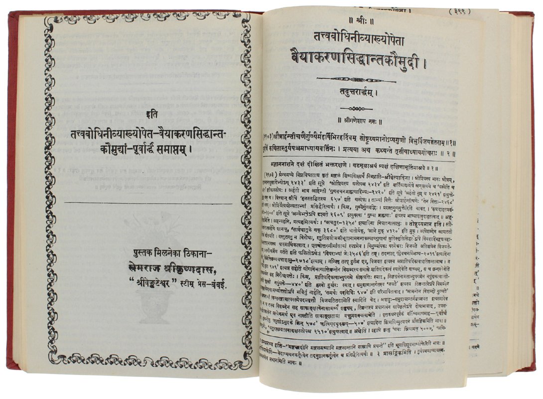 SIDDHANTA KAUMUDI OF BHATTOJI DEEKSHIT with the Tattvhodhini Commentari of Jnanendra Sarasvati the Subodhini Commentary of Jayakrishna - The Chandrakala Commentary of Bhairava Misra with the notes of Mahamahopadhyaya Pandit Sivadatta Shastri. | Libri antichi e moderni |