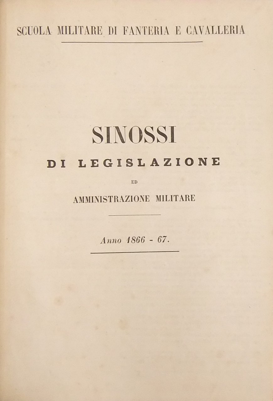 Sinossi di legislazione ed amministrazione militare. Anno 1866-67 | Libri antichi e moderni | Scuola Militare Di Fanteria E Cavalleria
