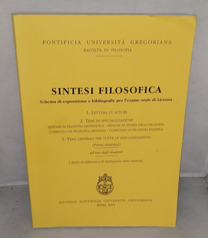 pontificia università gregoriana sintesi filosofica schema di esposizione e bibliografie. , editrice pontificia unoiversità gregoriana 2005 italiano, 246 °°