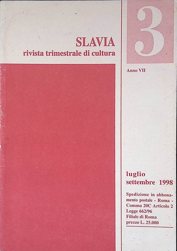 Slavia. N.3 Anno VII luglio-settembre 1998 | Libri antichi e moderni |