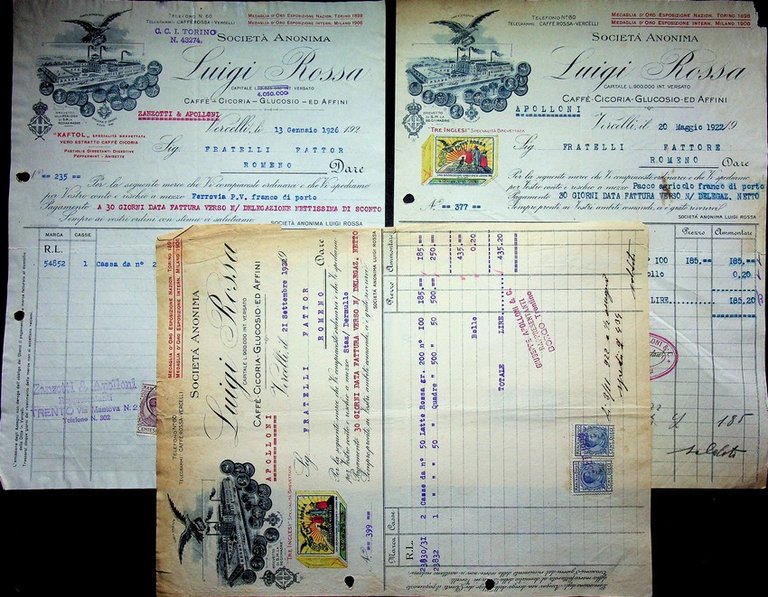 Società anonima Luigi Rossa: caffè, cicoria, glucosio ed affini.