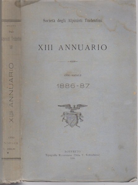 Società degli alpinisti Tridentini: XIII annuario: anno sociale 1886-87. | Libri antichi e moderni |
