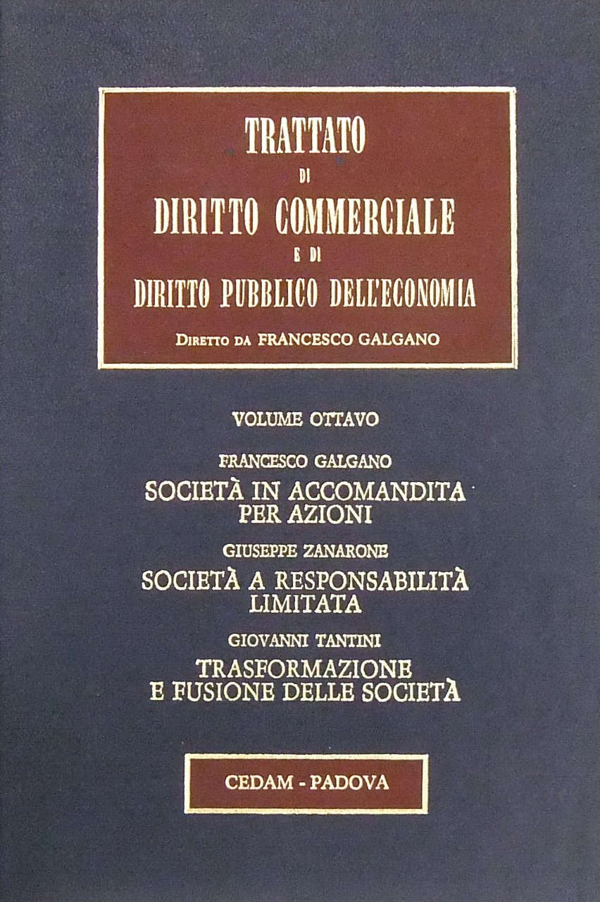 Società in accomandita per azioni (Galgano). Società a responsabilità limitata (Zanarone). Trasformazione e fusione delle società (Tantini) | Libri antichi e moderni | Galgano Francesco - Zanarone Giuseppe - Tantini Giovanni