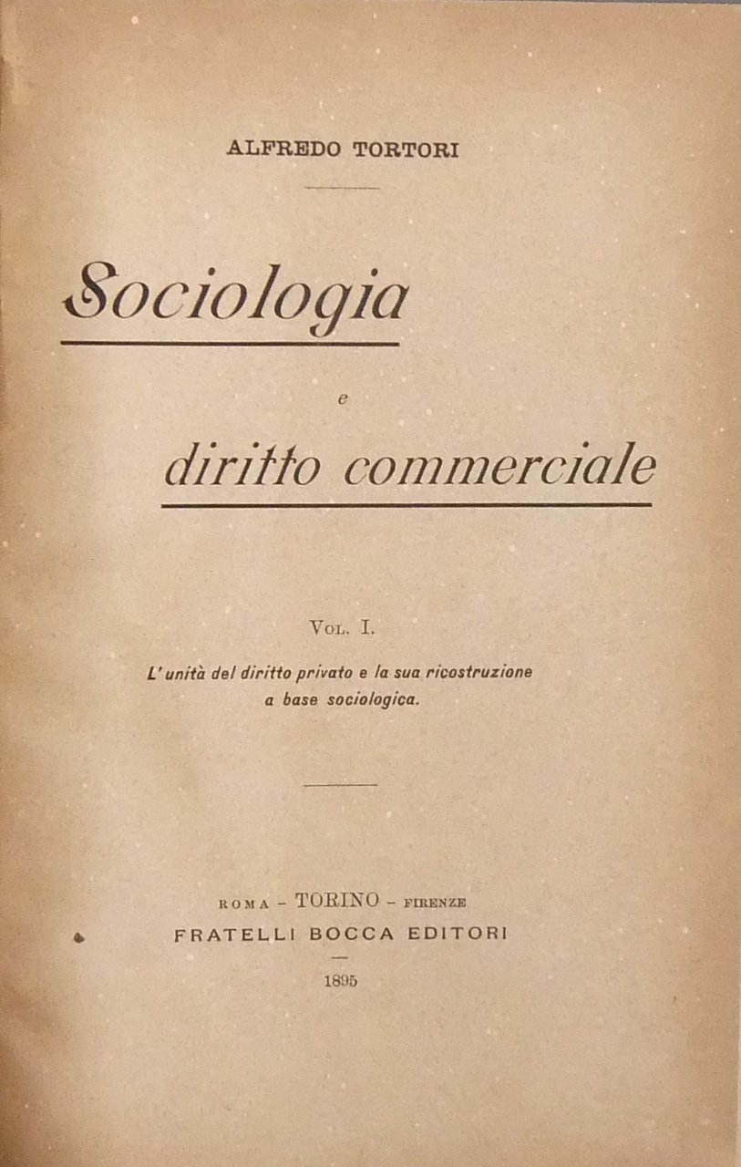 Sociologia e diritto commerciale. Vol. I (unico pubblicato) - L'unità del diritto privato e la sua ricostruzione a base sociologica | Libri antichi e moderni | Tortori Alfredo