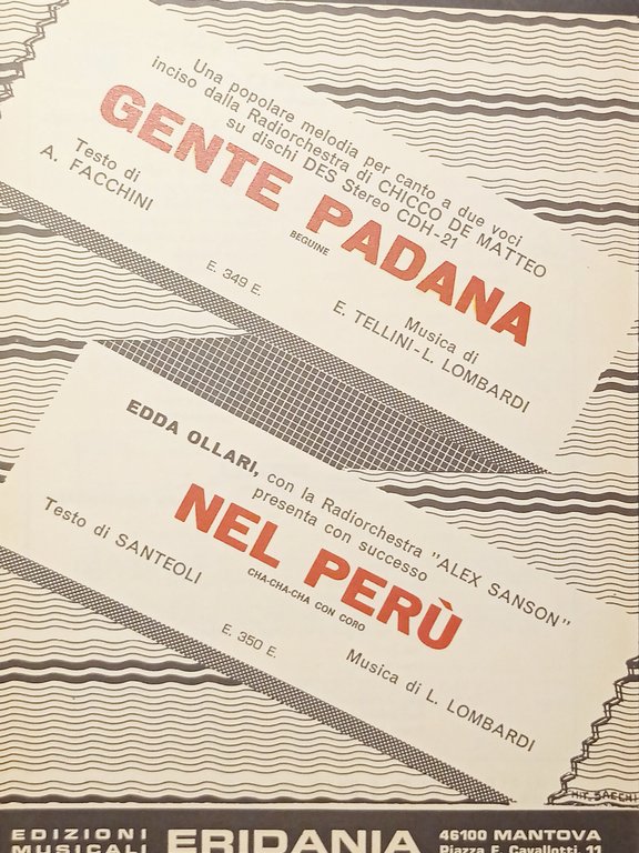 Spartiti - Gente Padana (Beguine) - Nel Perù (Cha Cha Cha con Coro) - 1986 Formato piccolo. Pagine 12 Condizioni molto buone.