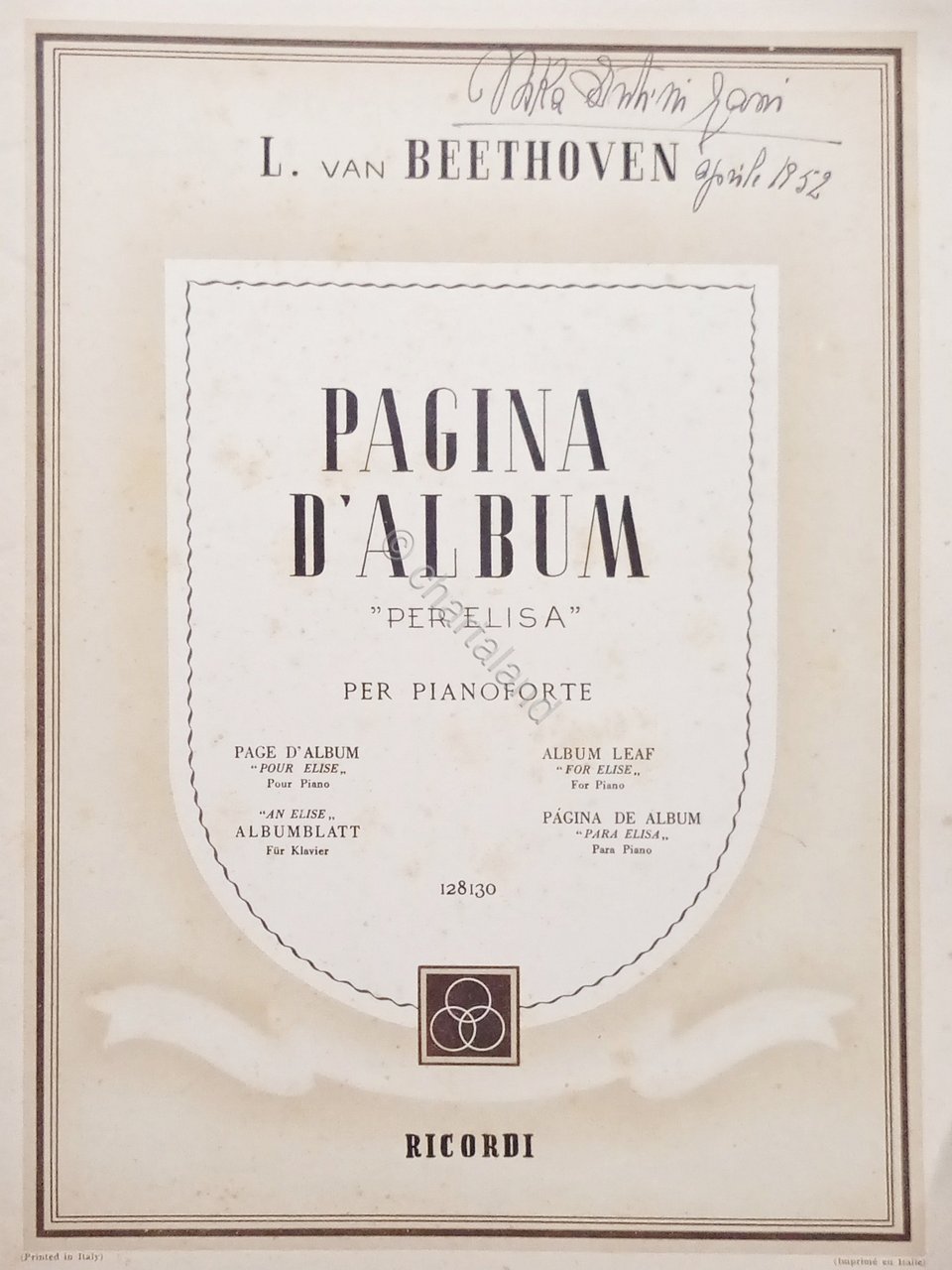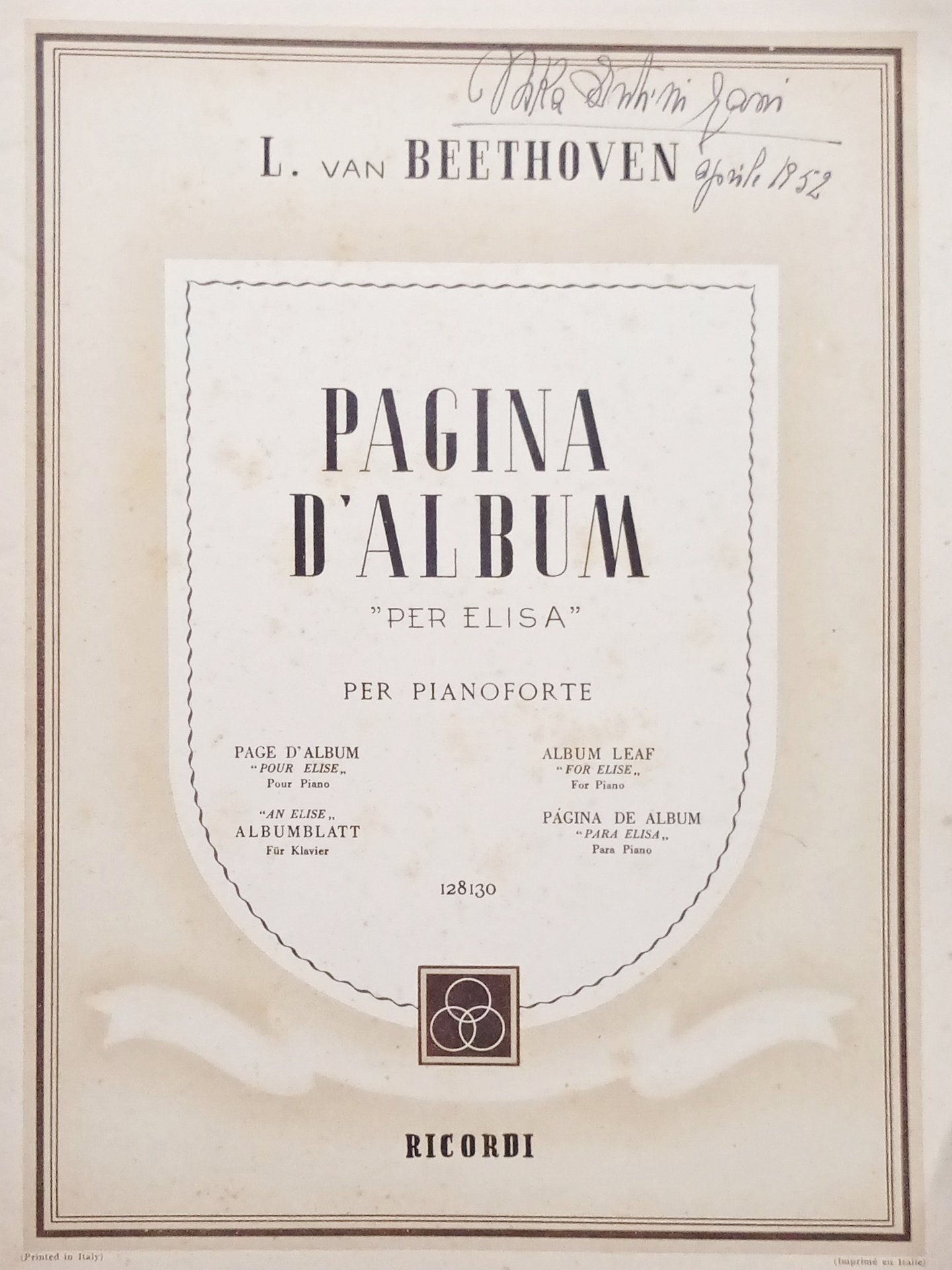 Spartiti - L. Van Beethoven - Pagina d'Album - Per Elisa per Pianoforte - 1950 | Libri antichi e moderni |