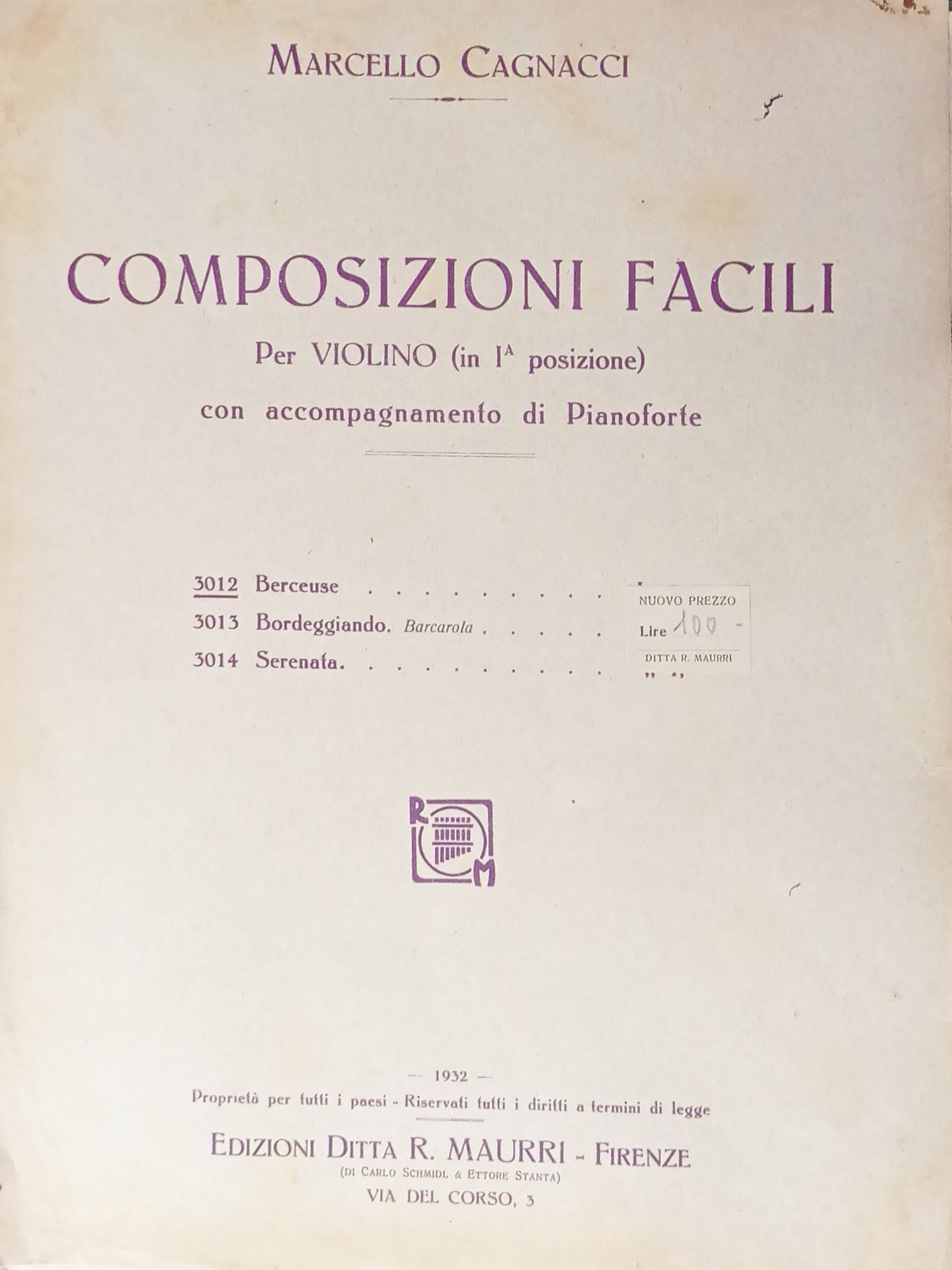 Spartiti - M. Cagnacci - Composizioni Facili per Violino con Piano - Berceuse