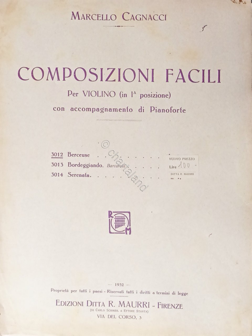 Spartiti - M. Cagnacci - Composizioni Facili per Violino con Piano - Berceuse | Libri antichi e moderni |