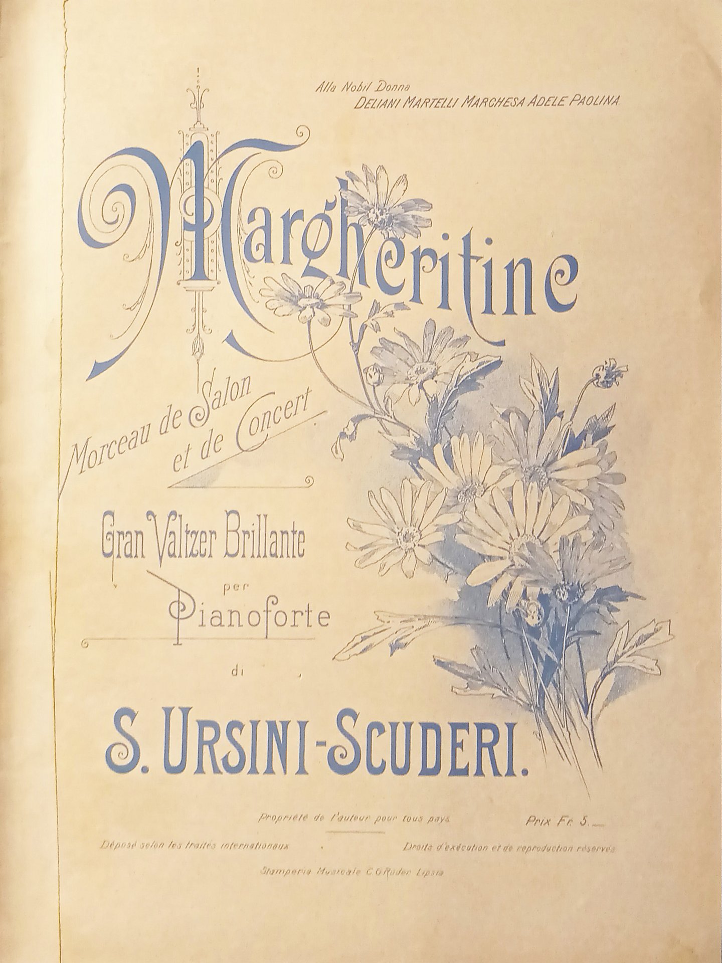 Spartiti - Margheritini - Gran Valzer Brillante per Piano di S. Ursini-Scuderi | Libri antichi e moderni |