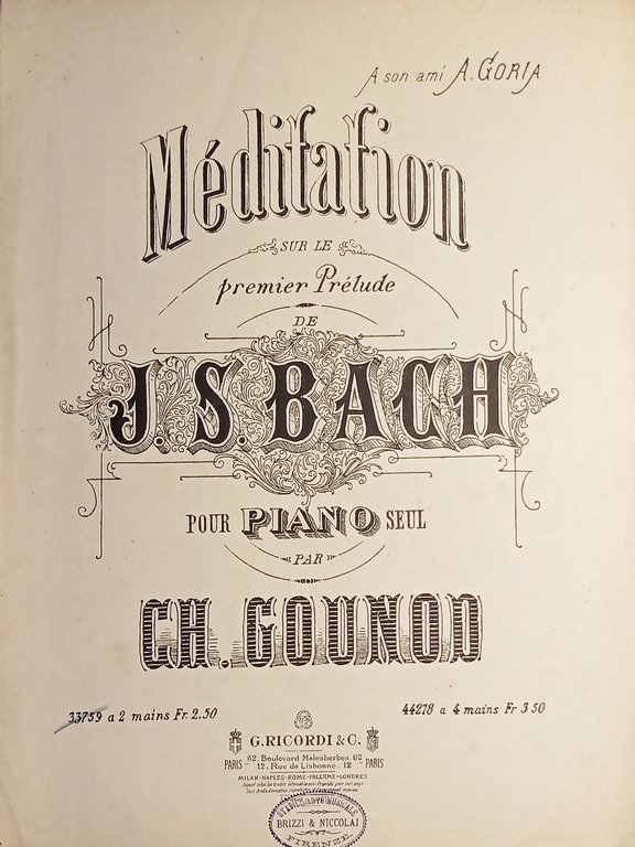 Spartiti - Méditation sur Prélude de J. S. Bach pour Piano par Ch. Gounod Formato grande. Pagine 7 Condizioni molto boune.