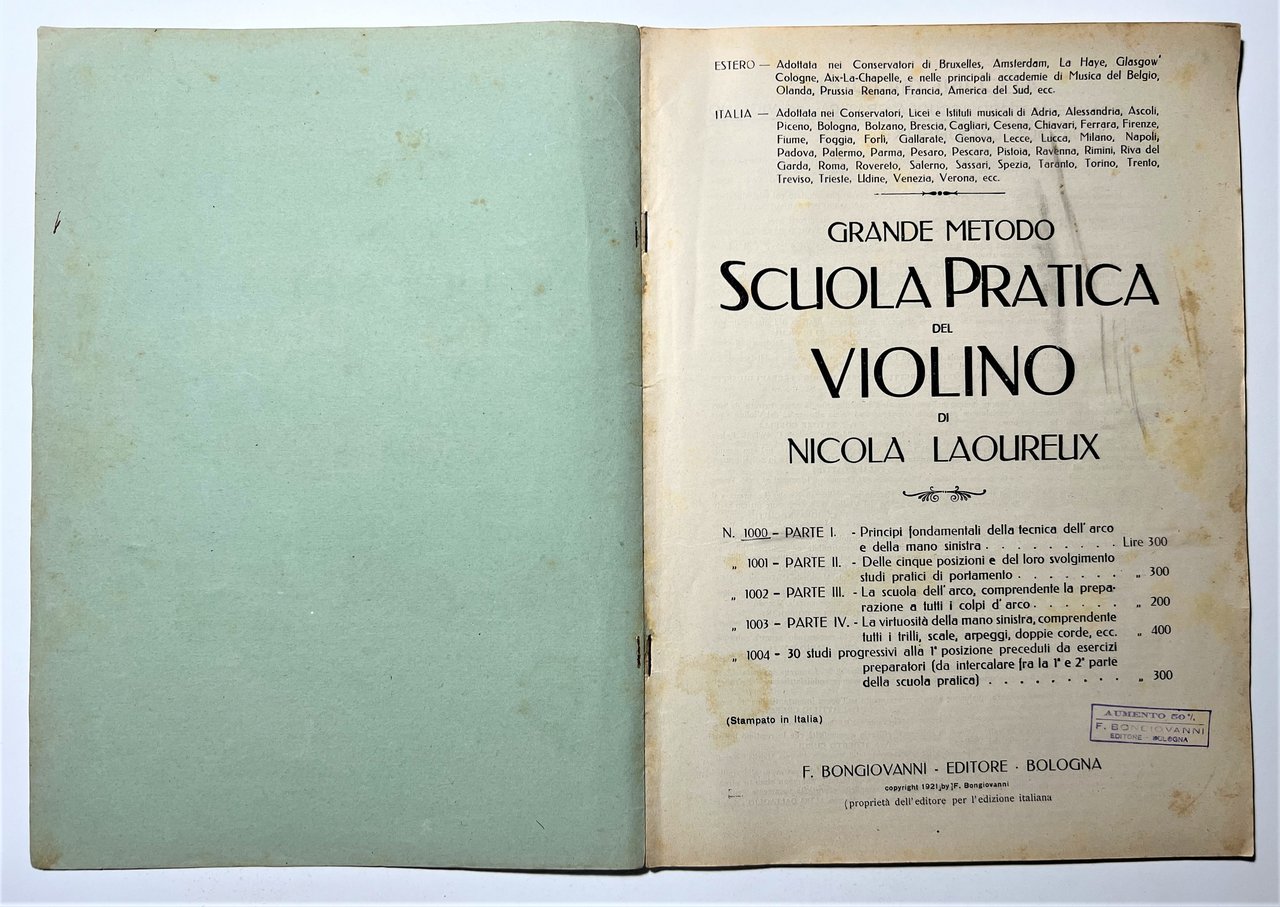 Spartiti - N. Laoureux - Grande Metodo - Scuola Pratica del Violino - ed. 1921 | Libri antichi e moderni |
