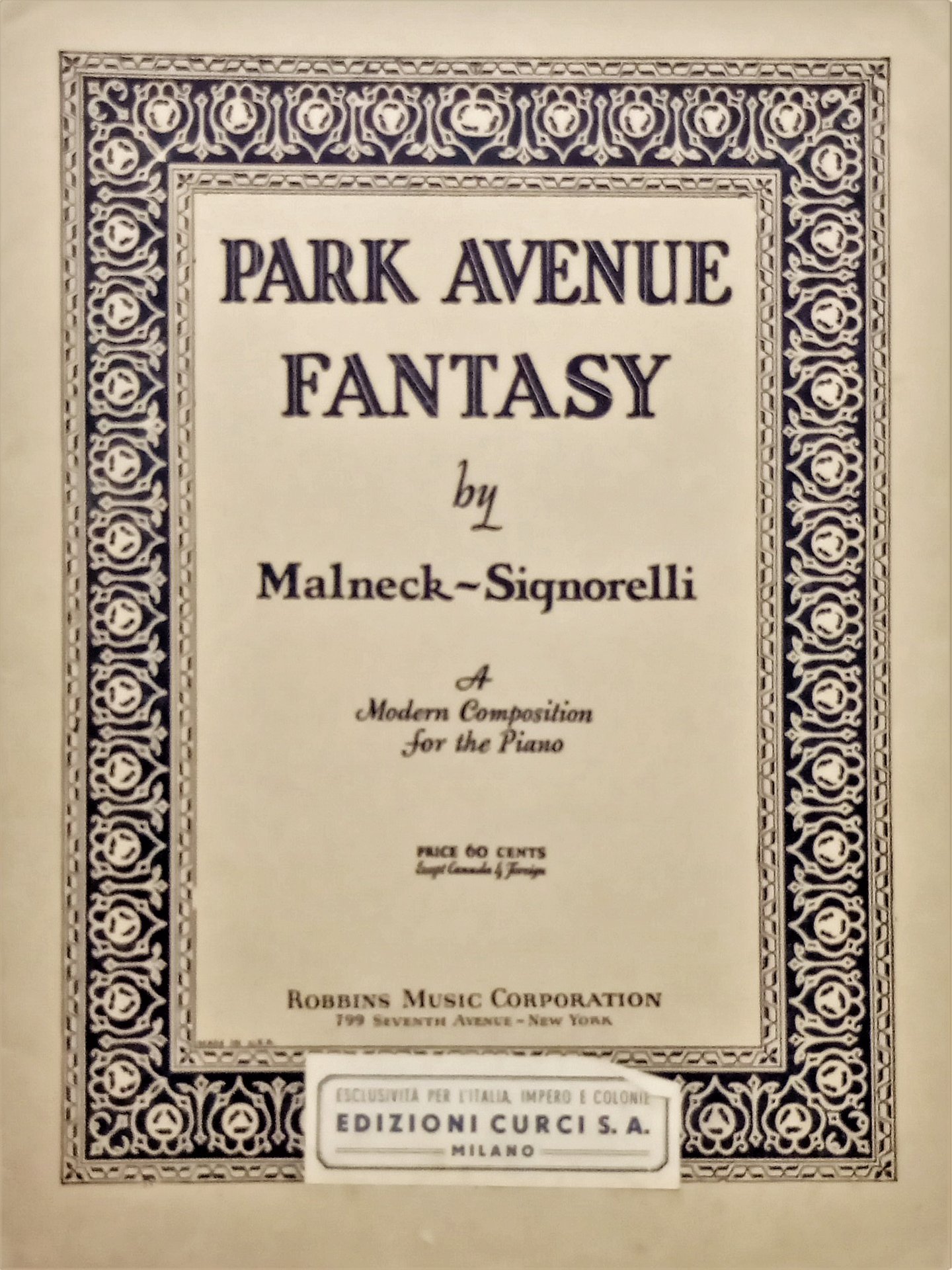 Spartiti - Park Avenue Fantasy by Malneck-Signorelli for the Piano - 1935 Curci | Libri antichi e moderni |