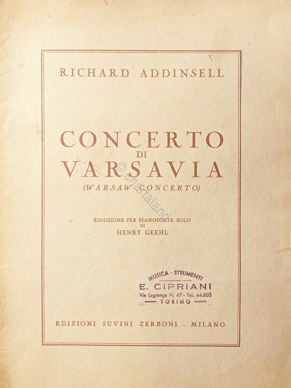 Spartiti - Richard Addinsell - Concerto di Varsavia per Pianoforte Solo di Geehl | Libri antichi e moderni |