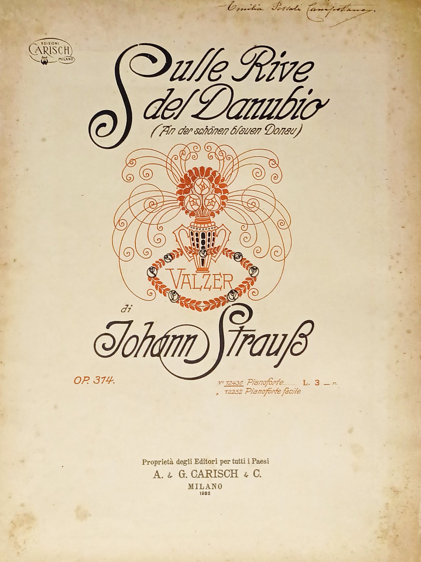 Spartiti - Sulle Rive del Danubio - Valzer di Johann Strauss - 1932 Carisch | Libri antichi e moderni |