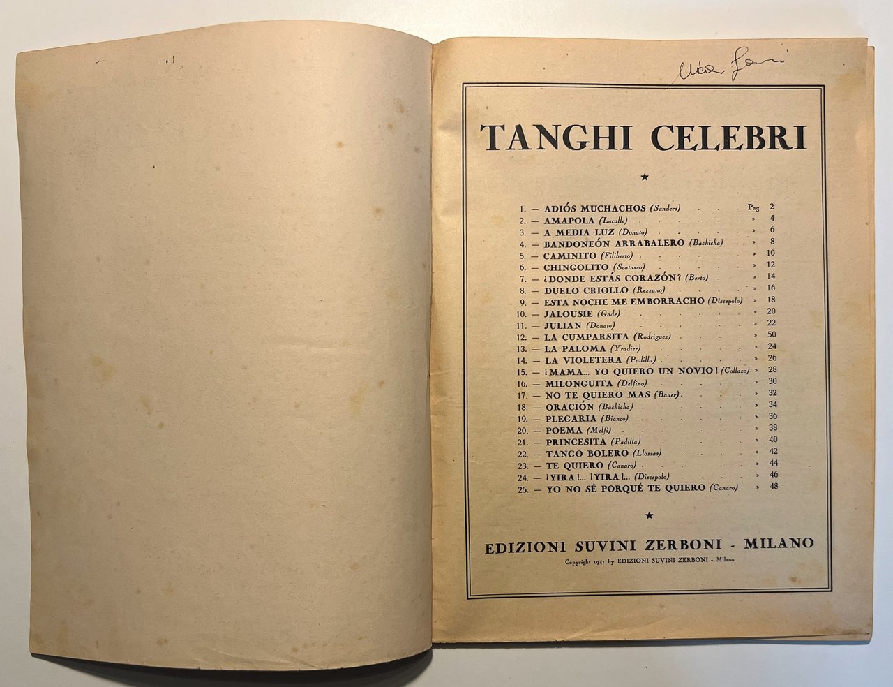 Spartiti - Tanghi Celebri per Canto e Pianoforte - ed. 1941 Zerboni