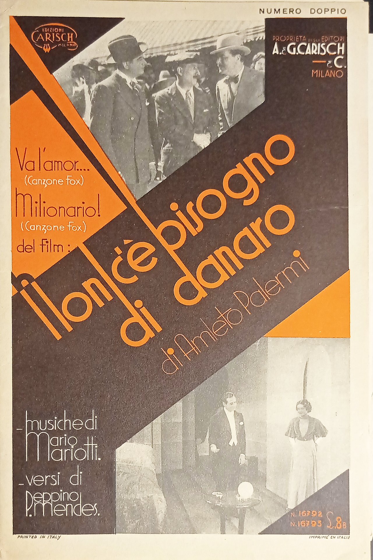 Spartiti - VÃ l'amor - Canzone Fox - Milionario - Canzone Fox di M. Mariotti Formato piccolo. Pagine 4 Condizioni buone come da foto.