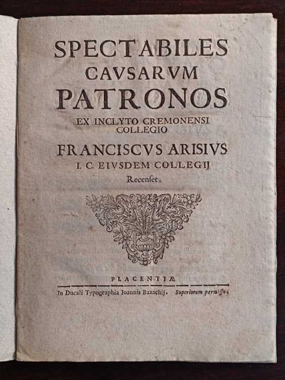 Spectabiles causarum patronos ex inclyto Cremonensi Collegio. | Libri antichi e moderni | Arisio Francesco.