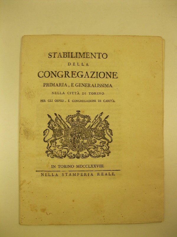 Stabilimento della Congregazione primaria e generalissima nella citta' di Torino per gli ospizi, e Congregazioni di carita' | Libri antichi e moderni |