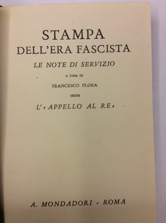 STAMPA DELL'ERA FASCISTA. LE NOTE DI SERVIZIO. - Segue l'Appello al Re. | Libri antichi e moderni | FLORA Francesco (A cura di)