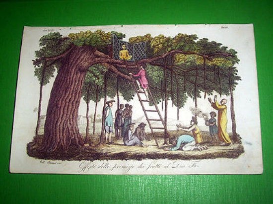 *** Stampa / incisione d' epoca Costumi e Storia dell' Asia - Offerte delle primizie di frutti al Dio Fò ( incisore Bernieri ) - tavola estratta dal volume, databile 1800 ca. Dimensioni dell' intero foglio cm. 14 x 22,5 circa Per appassionati, studiosi e collezionisti