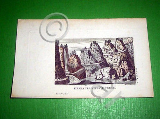 *** Stampa / incisione d' epoca incisa da Dall' Acqua - Strada tra Steen e Frenk - tavola estratta dal volume, databile 1700 ca. Dimensioni stampa cm. 6,2 x 10,4 circa / Dimensioni dell' intero foglio cm. 11 x 17,7 circa Per appassionati, studiosi e collezionisti