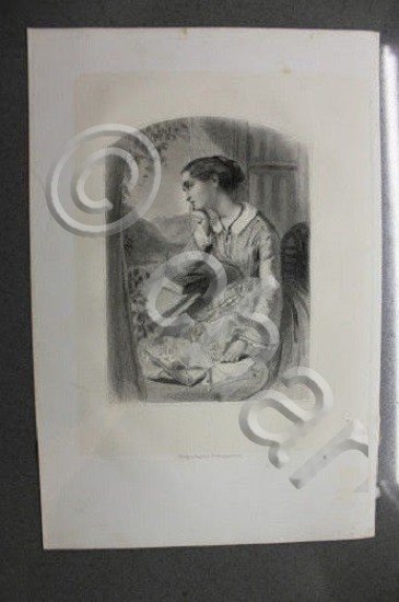 Stampa incisione Ottocento ritratto di giovane donna assorta | Libri antichi e moderni |