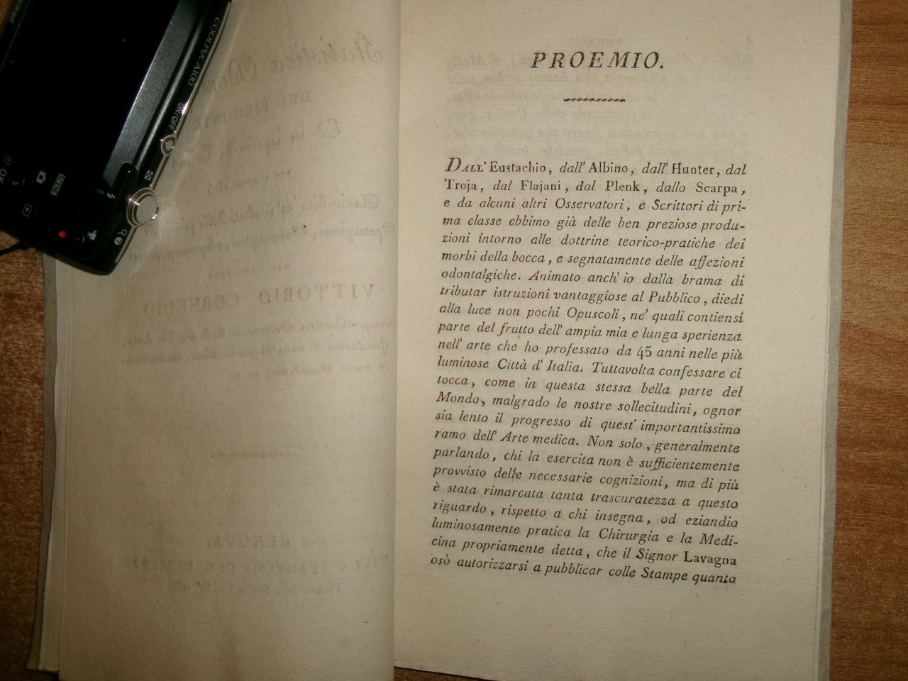 ...arricchita co' risultati delle principali operazioni esperienze fattevi dal cavaliere Vittorio Cornelio... In- 8°, cartoncino coevo (riapplicato). 44 pp. Opuscolo rarissimo sconosciuto al Poletti, al Weinberger e al Micheloni. Manca alla British Dental Association Library. Casa entro astuccio in busta trasp.