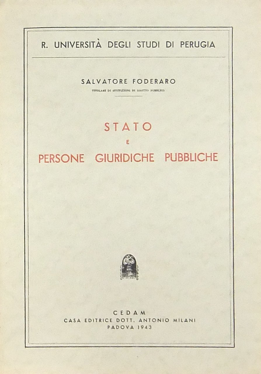 Stato e persone giuridiche pubbliche | Libri antichi e moderni | Foderaro Salvatore (1908-1979)