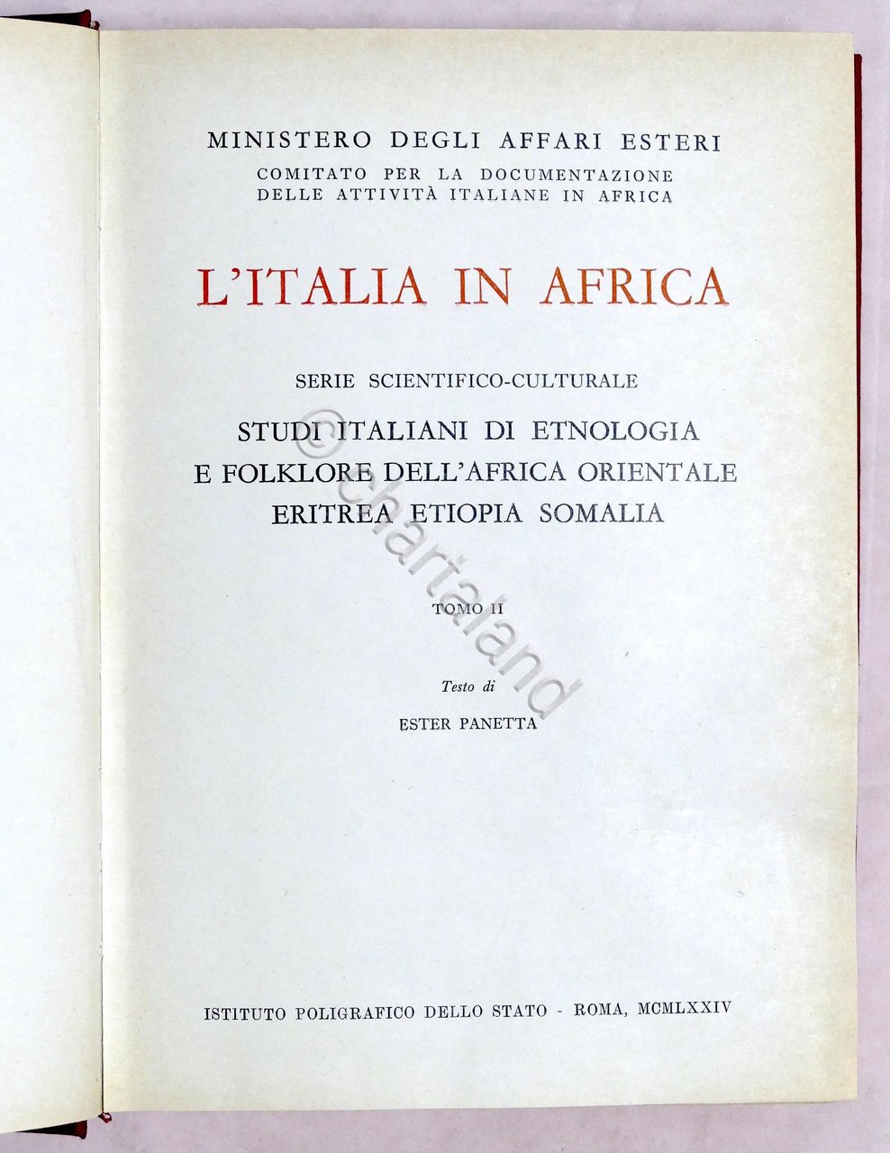 Storia Colonialismo Ministero per gli Affari Esteri L'italia in Africa - Serie scientifico-culturale - Tomo II - Ed. 1974 - Pag. 345. Studi Italiani di etnologia e Folklore dell'Africa Orientale Eritrea Etiopia Somalia.