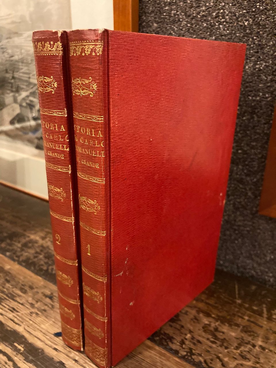 2 volumi in-8° antico (23x16 cm), pp. (22), 226, (2); (4), 239, (1); elegante cartonnage rosso coevo con ai dorsi titoli e tomaisons dorati su distinti tasselli, fregi dorati. Al controfrontespizio del primo volume ritratto protetto da velina di Carlo Emanuele inciso dal Sasso. Ex libris nobiliari applicati ai contropiatti anteriori. Più che buon esemplare. Edizione originale di questa documentata opera storica. In fine dell'opera, profili biografici di alcuni illustri personaggi fioriti durante il regno di Carlo Emanuele (Bogino, il Marchese di Ormea, il Cardinale delle Lanze, il conte Caissotti di Santa Vittoria, Giuseppe Osorio). Il primo volume discorre degli eventi del regno di Carlo Emanuele III dall'abdicazione del padre, Vittorio Amedeo II, fino alla battaglia dell'Assietta e alla Pace di Aquisgrana; il secondo prosegue la narrazione attraverso l'opera di consolidamento dello stato, dal Concordato con Benedetto XIV fino alla scomparsa del sovrano, indugiando con particolare ricchezza di notazioni sull'organizzazione economico-finanziaria e l'amministrazione del Regno di Sardegna. Il Semeria, sacerdote oratoriano, nacque a Sanremo, nel 1779, e morì nel 1843; a lui si debbono numerosi volumi di storia civile ed ecclesiastica di àmbito ligure-piemontese (Secoli cristiani della Liguria, ossia Storia della metropolitana di Genova, delle diocesi di Sarzana, di Brugnato, Savona, Noli, Albenga e Ventimiglia; Storia della Chiesa Metropolitana di Torino; Vita del Beato Sebastiano Valfrè; Secoli cristiani della Liguria, ecc.). Manca al Manno e al Lozzi. Cfr. Carlantonio De Rosa Marchese di Villarosa, Memorie degli scrittori Filippini o sieno Della Congregazione di S. Filippo Neri, I, 1846, p. 205.