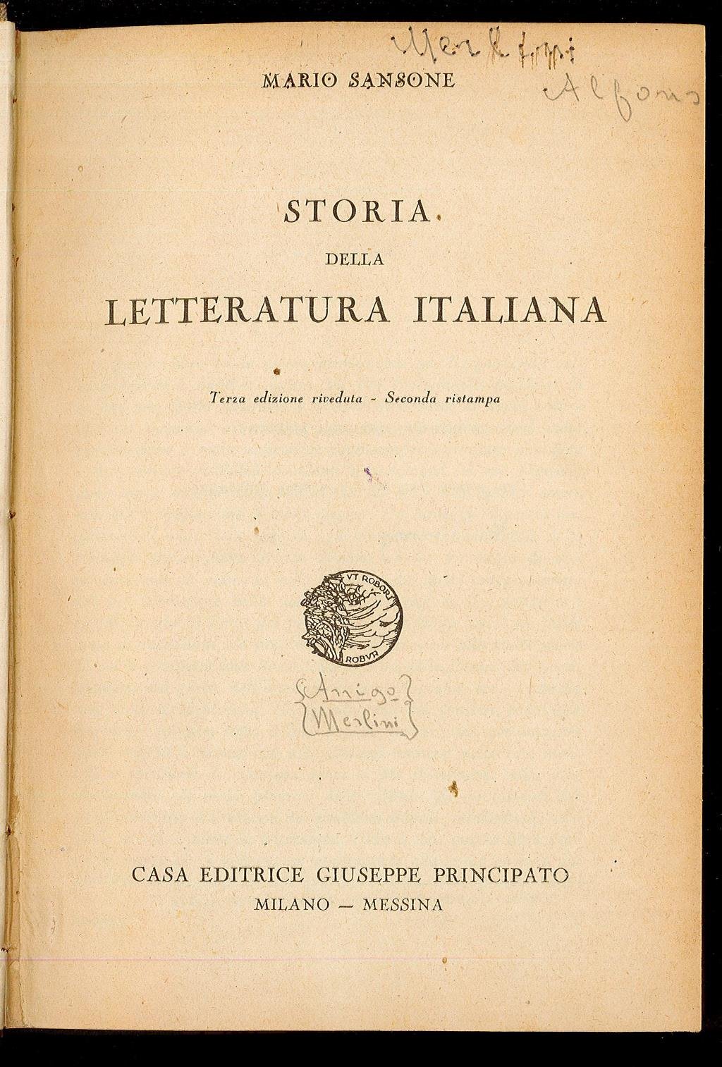 Storia della letteratura italiana | Libri antichi e moderni | Sansone Mario, Sansone Mario