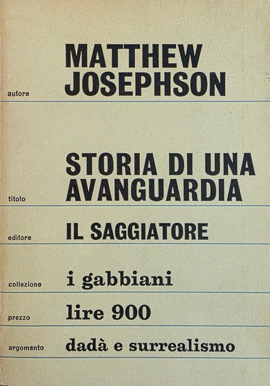 STORIA DI UNA AVANGUARDIA. DADA E SURREALISMO | Libri antichi e moderni | JOSEPHSON MATTHEW, ,JOSEPHSON MATTHEW