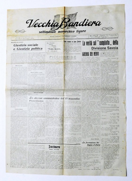 Storia Politica - Vecchia Bandiera Settimanale monarchico ligure - N° 33 - 1946 | Libri antichi e moderni |