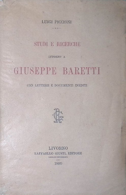 Studi e ricerche intorno a Giuseppe Baretti con lettere e documenti inediti | Libri antichi e moderni | Piccioni Luigi