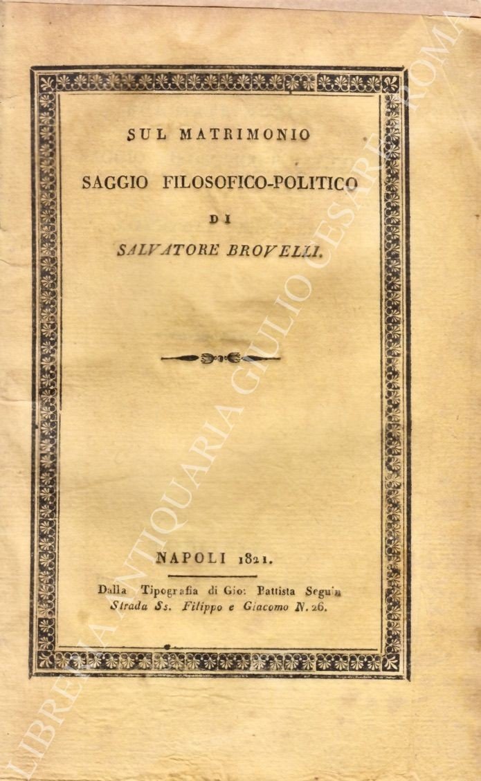 Sul matrimonio saggio filosofico - politico | Libri antichi e moderni | Brovelli Salvatore