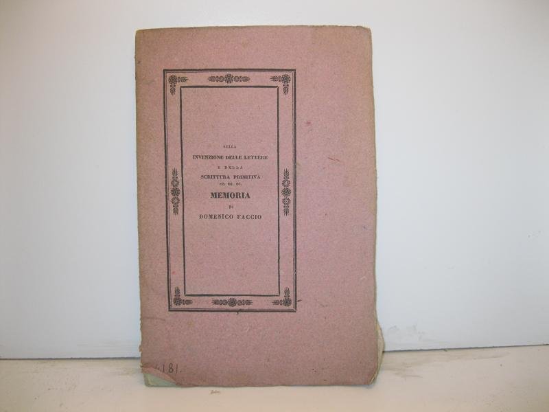 SULLA INVENZIONE DELLE LETTERE E DELLA SCRITTURA PRIMITIVA, SULLA MATERIA ED ISTRUMENTI USATI PER LO SCRIVERE, SULLA FORMA INTERNA ED ESTERNA DE' LIBRI ANTICHI, NON CHE SUI NOTAI, SCRITTORI E COPISTI MEMORIA DI D. FACCIO VICE-BIBLIOTECARIO . .