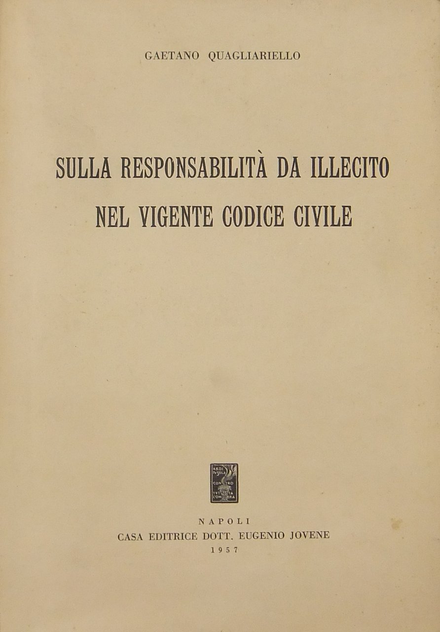 Sulla responsabilità da illecito nel vigente Codice civile | Libri antichi e moderni | Quagliariello Gaetano