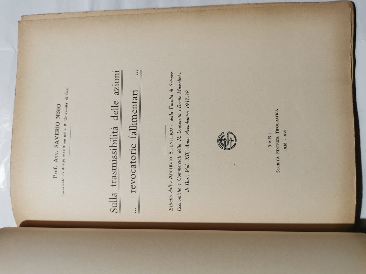 Sulla trasmissibilità delle azioni revocatorie fallimentari | Libri antichi e moderni | Nisio, Saverio