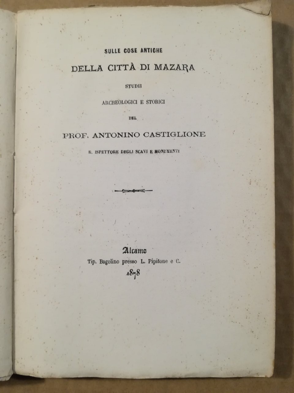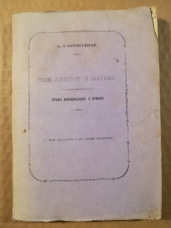 Sulle cose antiche della città di Mazara. Studii archeologici e storici del prof. Antonino Castiglione R. Ispettore degli scavi e monumenti | Libri antichi e moderni | CASTIGLIONE, Antonino