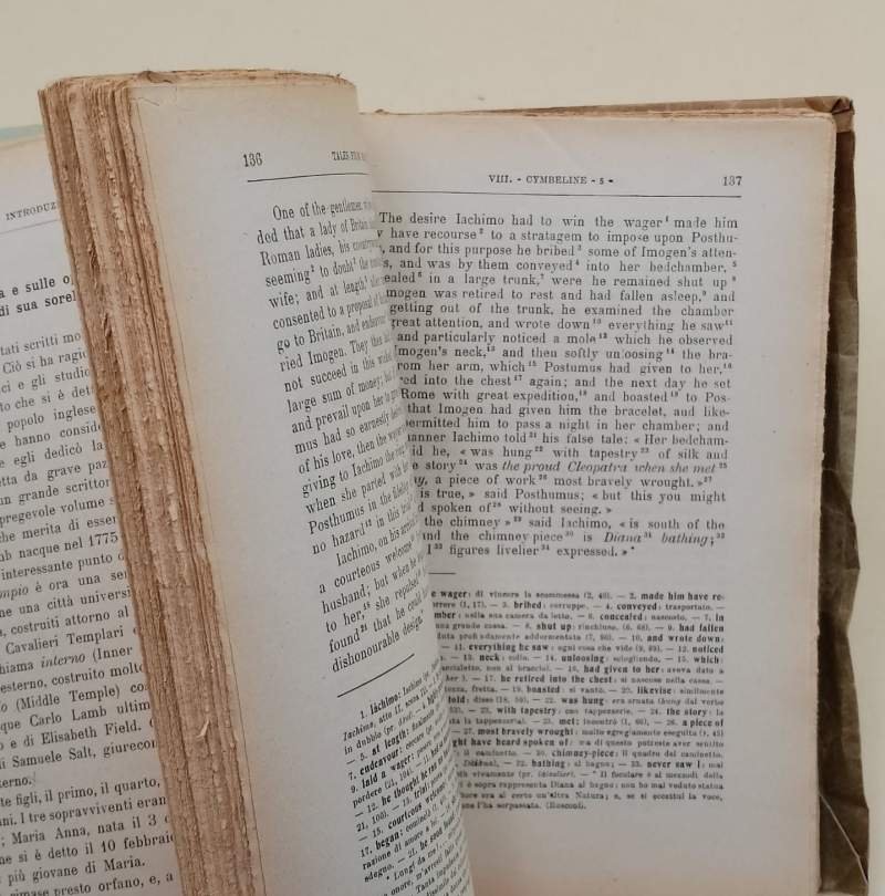In 8', br. ed., sovrac. amatoriale, pp. X introduttive, in italiano di V. Gaudiodimonte, 348 pp. di testi in inglese; pieghe al dorso, fioriture e segni d'uso, interno buono segni del tempo. ***Due to bureaucratic reasons, books dated over 70 years old cannot be immediately exported, please contact us before placing the order.***