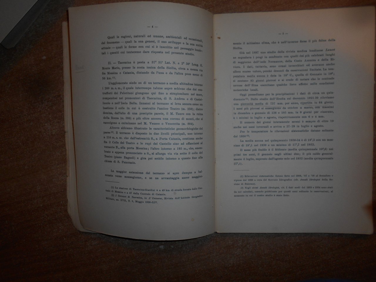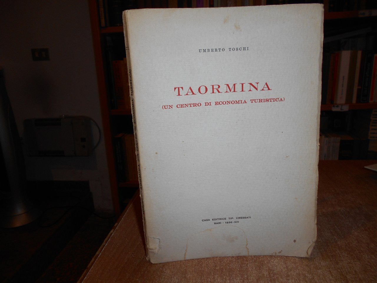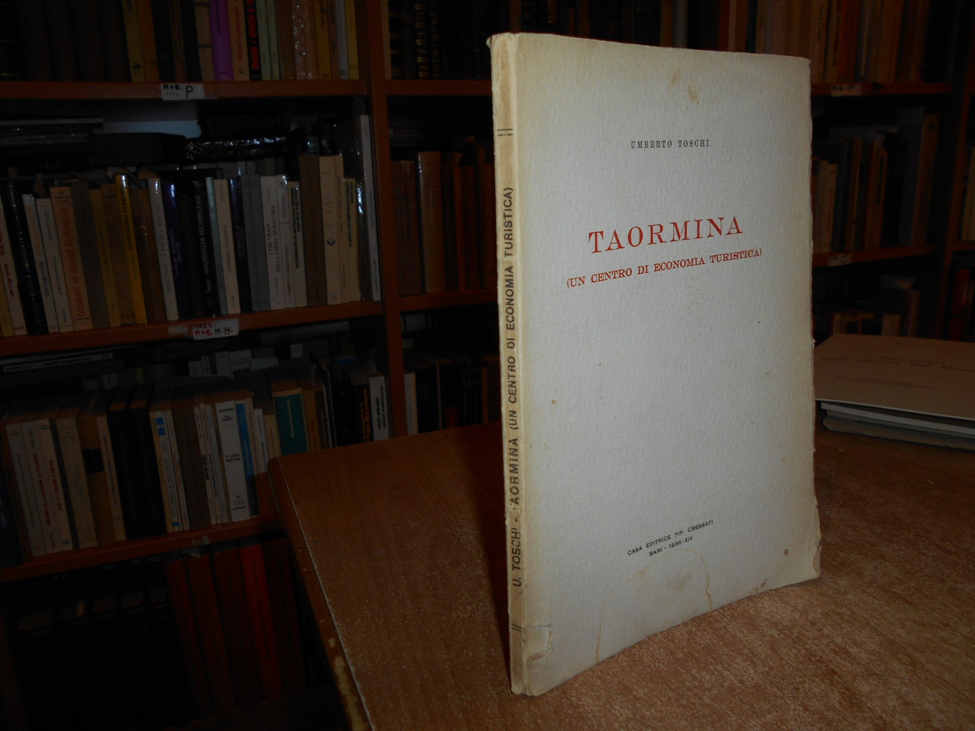 UMBERTO TOSCHI. Bari, Casa Editrice Tip. Cressati, 1936. TAORMINA (un centro di economia turistica). In-8°, br. 64 pp. con una tavola f.t. Ex libris nella prima bianca. Piccolo foro alla base della brossura anteriore ma in buono stato di conservazione. Neg. viaggi entro busta trasp.