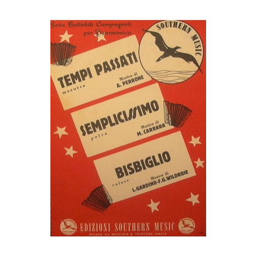 Autori Perrone A., Carrara M., Gardino L. e Wildrose F. G. - Serie ballabili campagnoli per fisarmonica - in 8° - pp.5 - Brossura editoriale illustrata