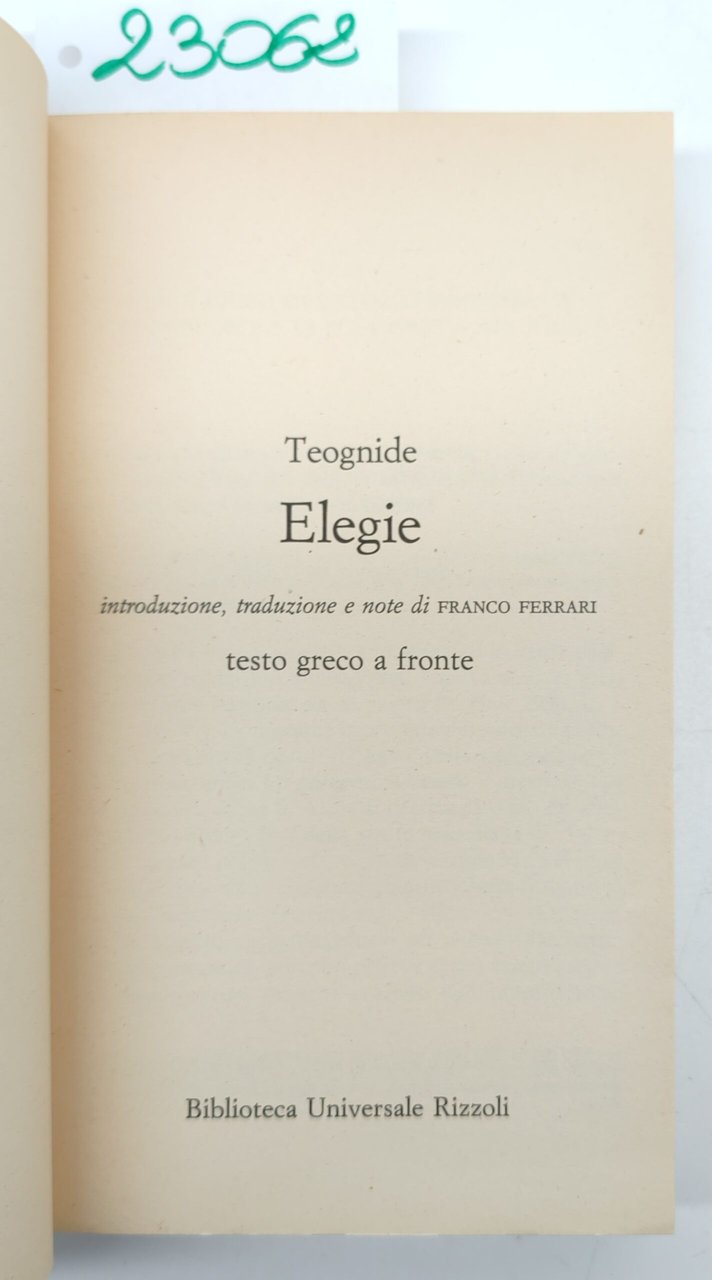Teognide Elegie BUR Rizzoli 1° edizione 1989 | Libri antichi e moderni | Teognide